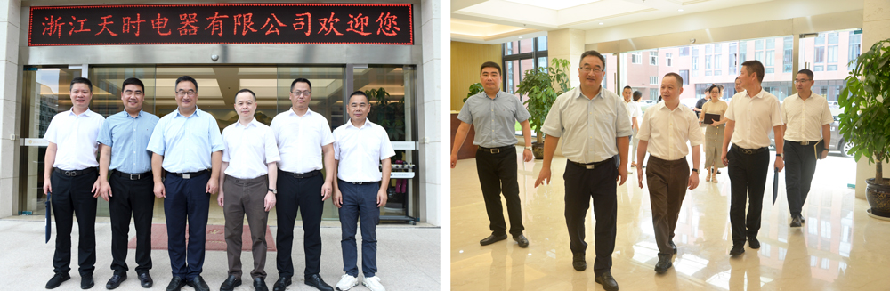2019年8月29日上午,温州市人大常委会副主任、市总工会主席张洪国在浙南产业集聚区(经开区)党工委委员、调研员赵立强等领导的陪同下,莅临维琅电气旗下核心企业浙江天时电器有限公司视察调研,我司董事长陶思忍携工会主席陈学克、总经理吴仁洪热情接待各位贵宾。